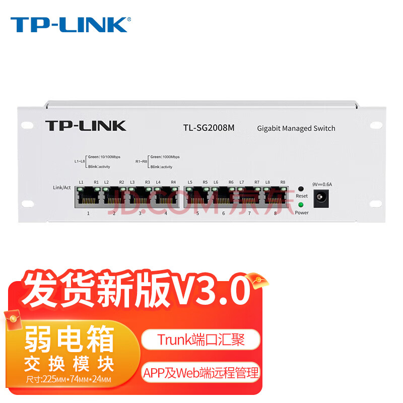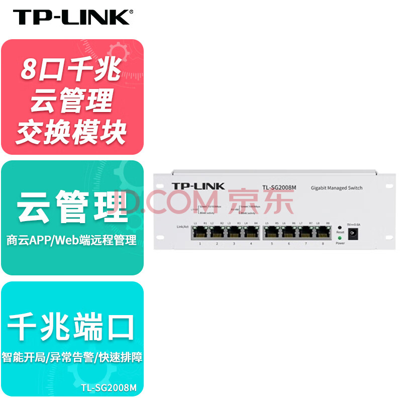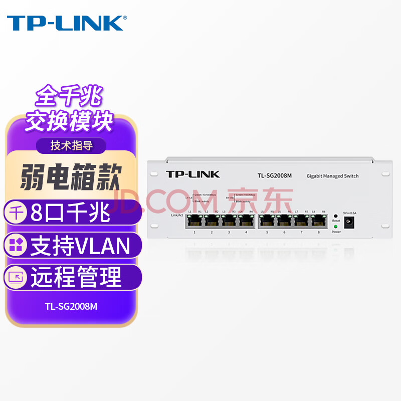 商品相册:普联(TP-LINK)千兆交换机8口小型网络弱电箱模块可网管型支持VLAN云管理铁壳TL-SG2008M第