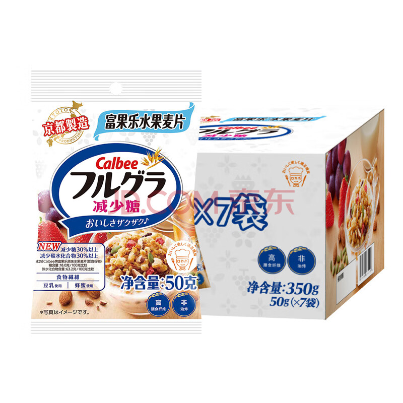 商品相册:卡乐比(Calbee)即食燕麦片 减糖水果麦片50g*7独立小包 营养早餐冲饮代餐零食第