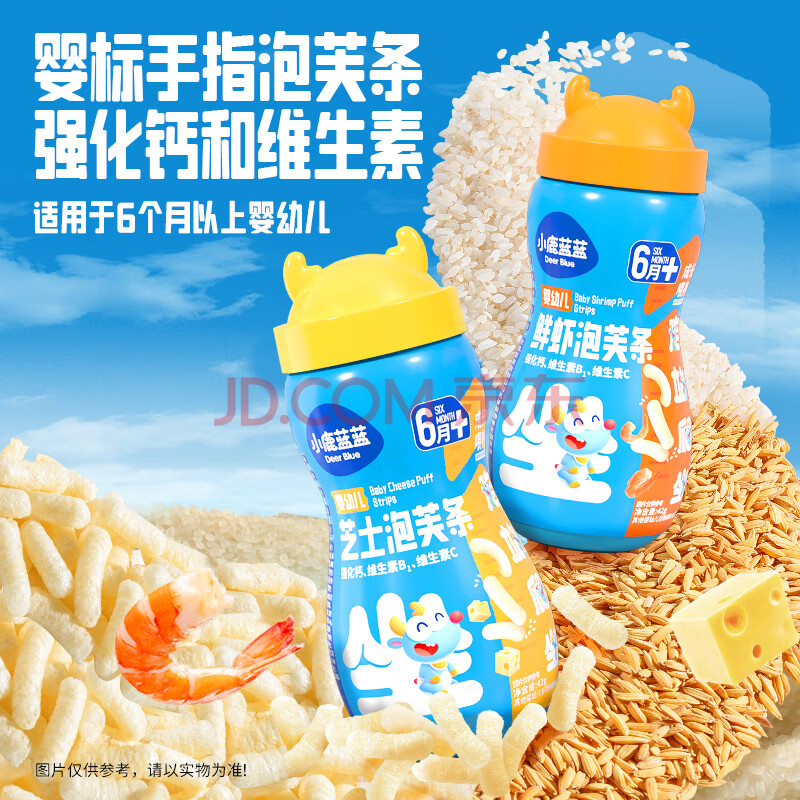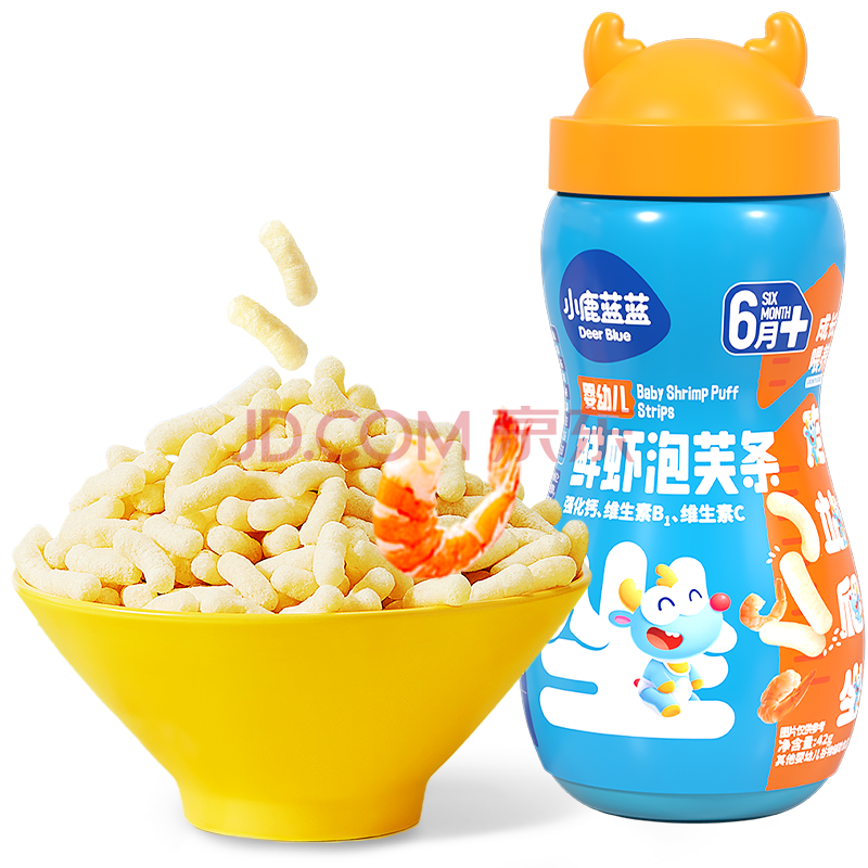 商品相册:小鹿蓝蓝婴幼儿泡芙条鲜虾味42g6月宝宝零食手指泡芙辅食条饼干吸口水第