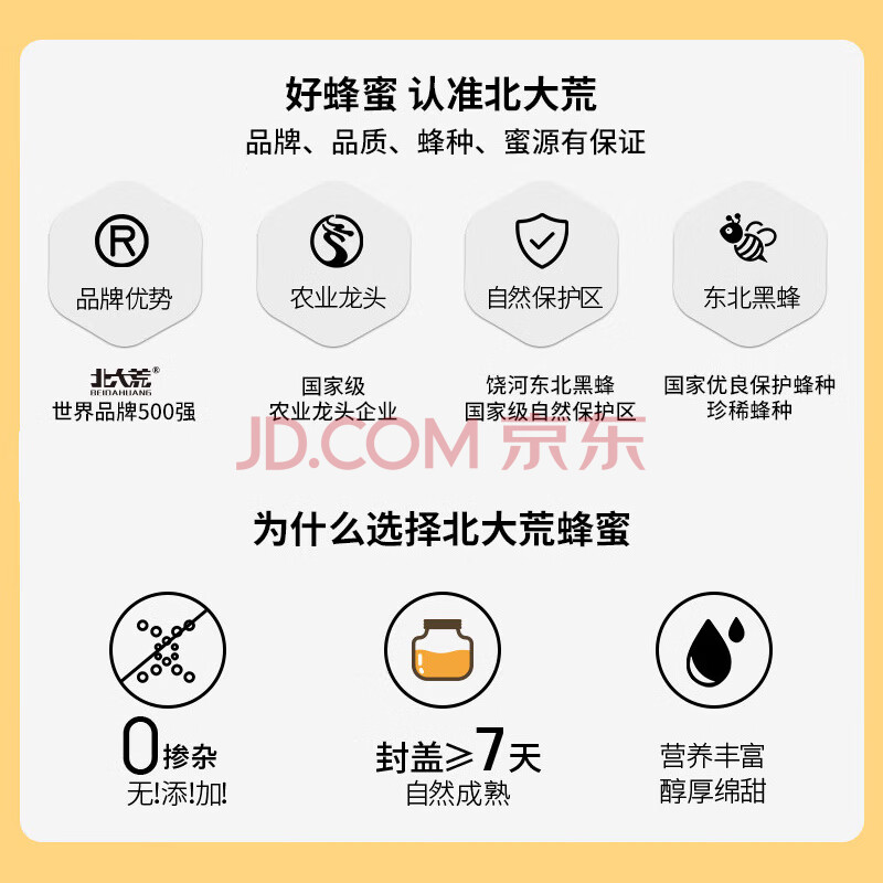 商品相册:北大荒 东北黑蜂 椴树雪蜜 纯蜂蜜1000g 源产地 冲饮搭档第