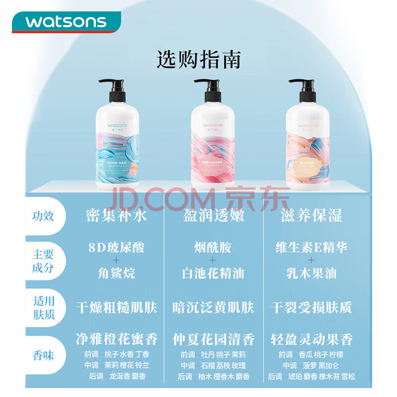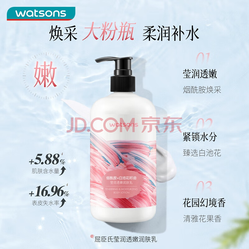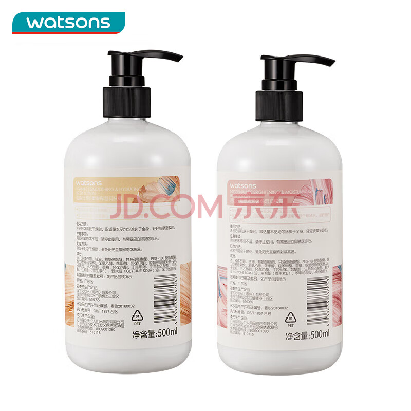 商品相册:屈臣氏保湿润肤露套装500ml*2(烟酰胺+维E) 补水滋养呵护焕采身体乳第