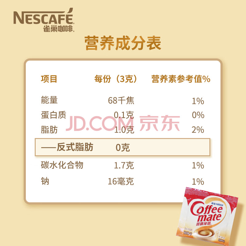商品相册:雀巢(Nestle)咖啡奶茶伴侣 植脂末3g*100包独立便携袋装 0反式脂肪酸第
