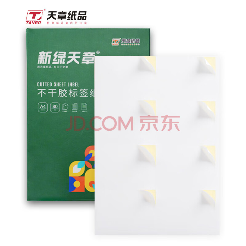 商品相册:天章 (TANGO)A4不干胶打印纸黄底哑面背胶纸标签贴纸 A4喷墨打印贴纸圆角8枚/张(96mm*70mm) 80张/盒第
