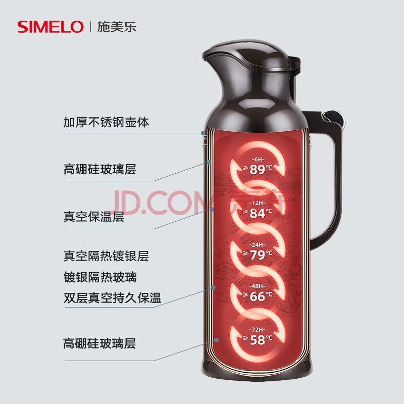 商品相册:SIMELO施美乐保温壶不锈钢热水瓶玻璃内胆开水壶新北京暖壶2000ML本色第