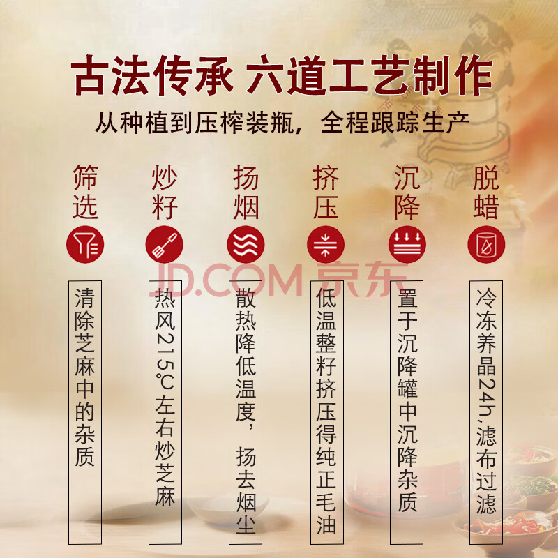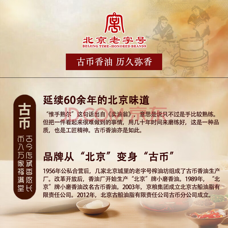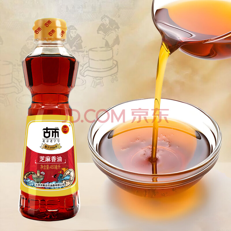 商品相册:古币 芝麻香油 纯芝麻香油450ml 凉拌调味火锅油碟京粮出品北京老字号第1张/共8