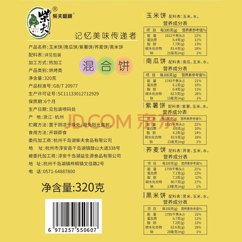 商品相册:柴夫不加糖粗粮饼干320g杂粮薄饼干代餐孕妇零食品紫薯南瓜玉米饼干第1张/共6