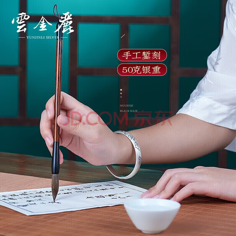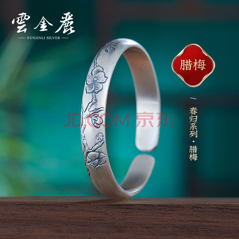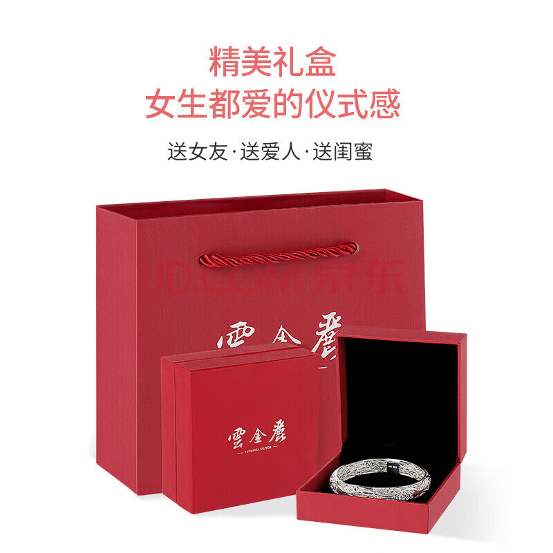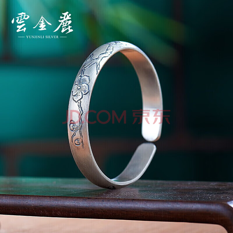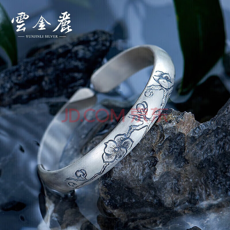 商品相册:云金丽银手镯999足银女民族风做旧开口实心银镯子送妈妈长辈生日礼物第