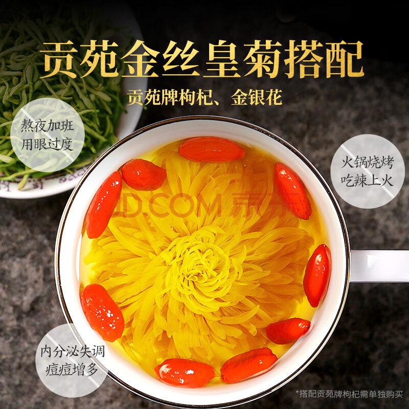 商品相册:贡苑菊花茶30大朵安徽黄山金丝皇菊特级一杯一朵独立包装熬夜去火胎菊第