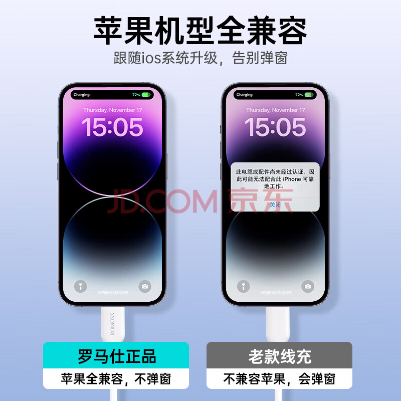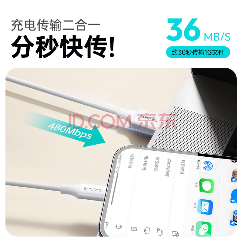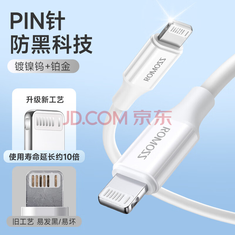 商品相册:罗马仕 苹果数据线快充充电线 适用iPhone14/13/12Pro Max/11/Xs/XR/8手机ipad/Air平板充电器线车载1.5m第