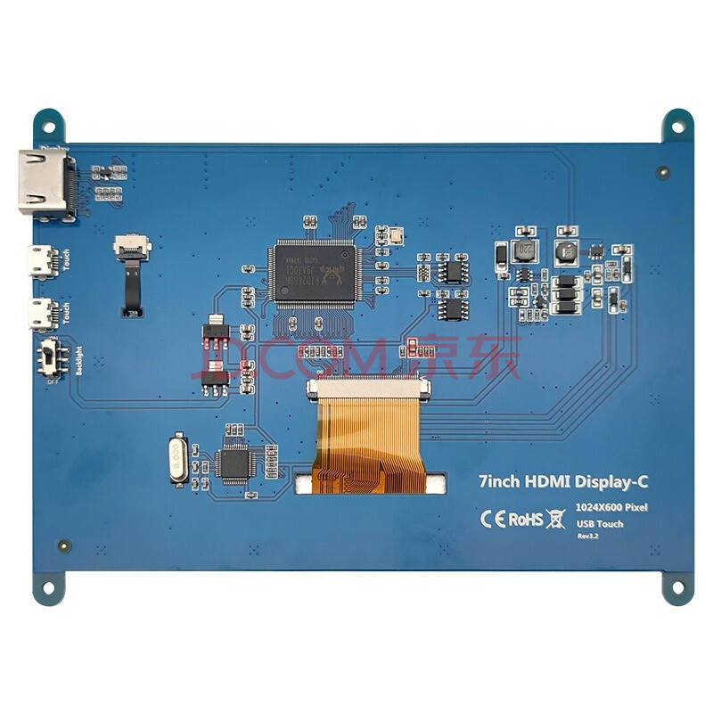 商品相册:丢石头 7英寸显示屏 1024X600 IPS电容式触摸屏 HDMI 树莓派4B显示器 免驱第