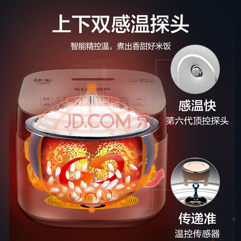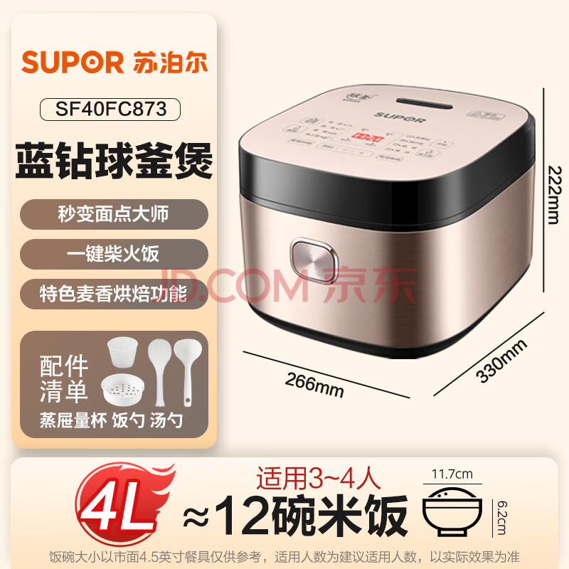 商品相册:苏泊尔(SUPOR)电饭煲电饭锅5-8个人大容量4升蓝钻球釜柴火饭蒸米饭煮粥家用不粘锅智能预约微压电饭锅SF40FC873第