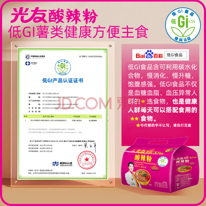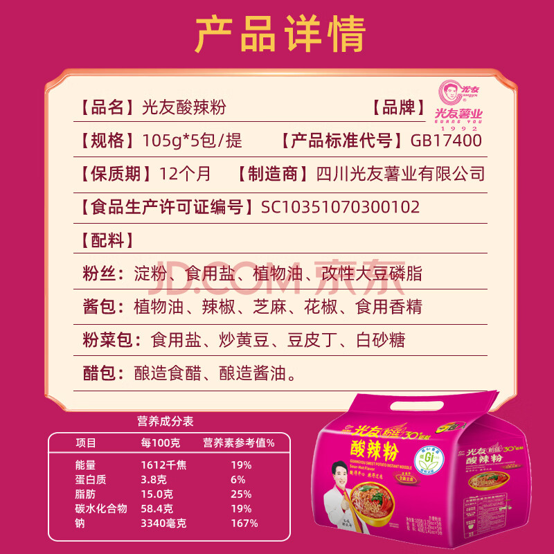 商品相册:光友酸辣粉五连包无明矾低Gi食品即食减脂减肥老牌子早餐方便粉丝525g第