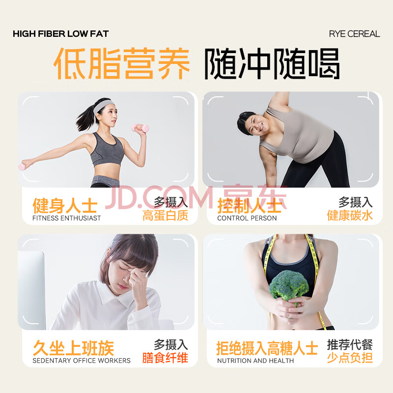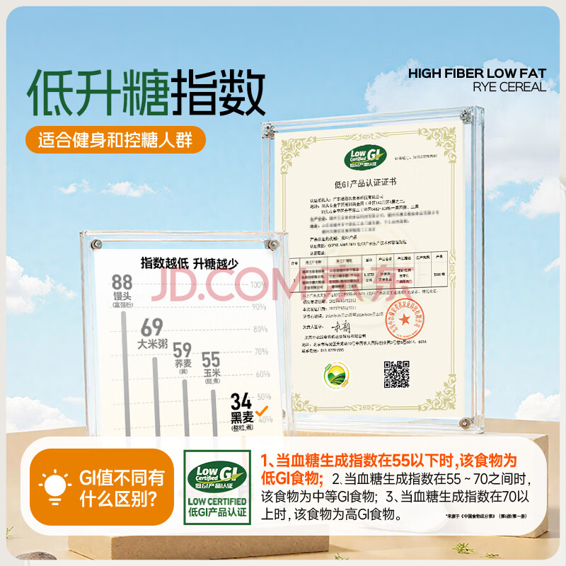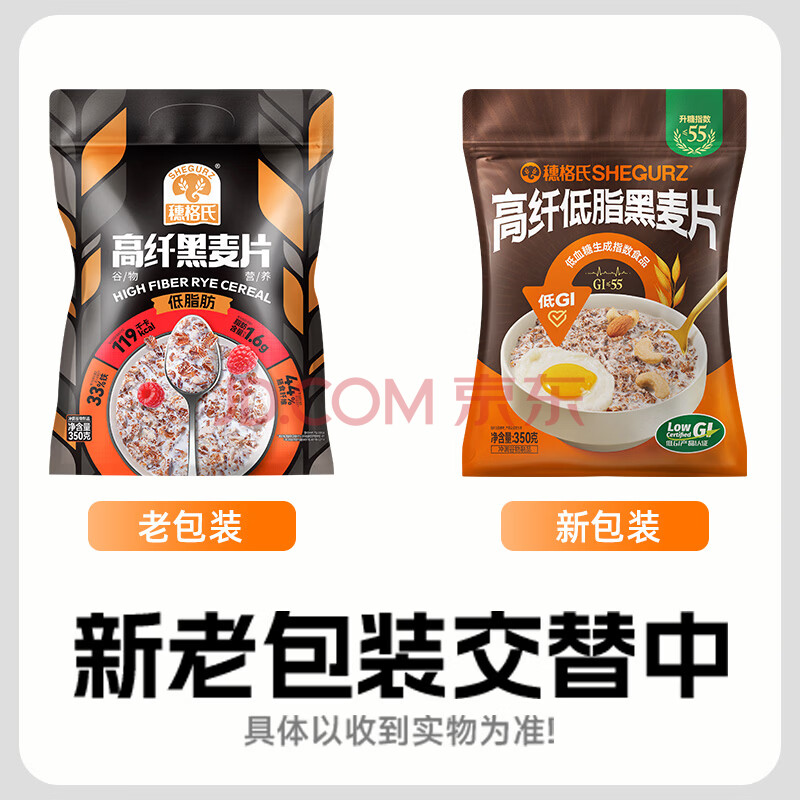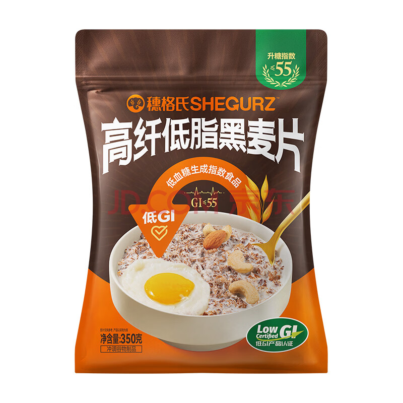 商品相册:穗格氏高纤黑麦片350g 低GI食品即食麦片高蛋白学生早餐低脂健身代餐第