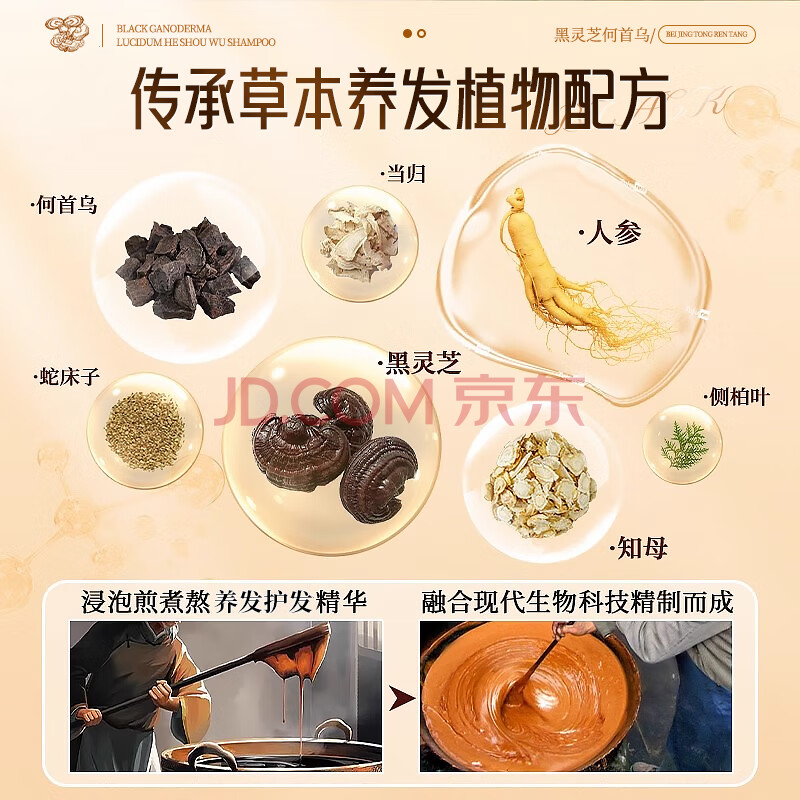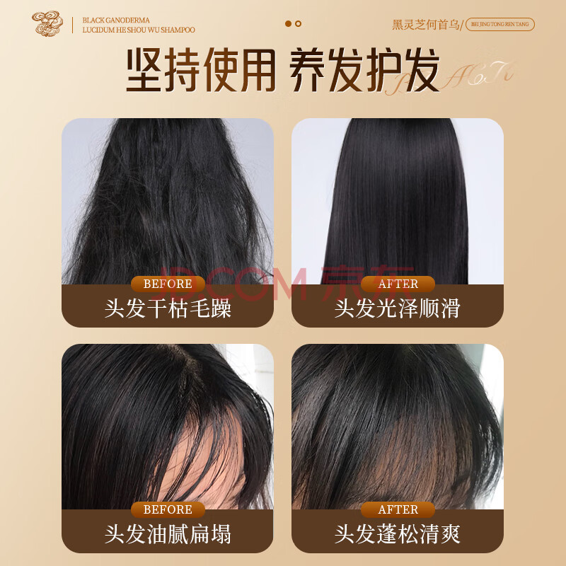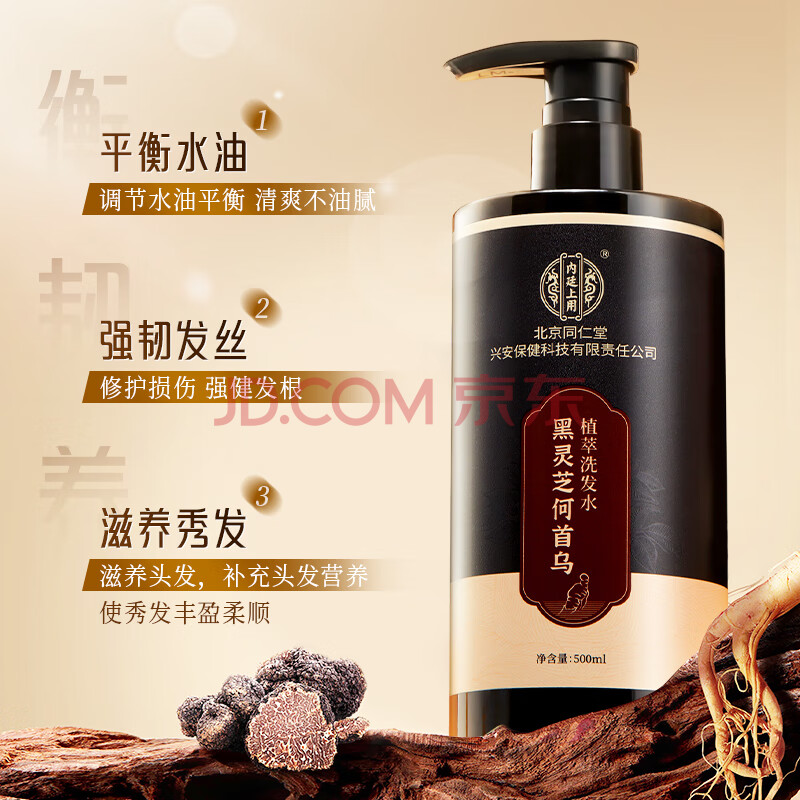 商品相册:内廷上用北京同仁堂何首乌洗发水滋养头皮发根蓬松柔顺亮泽洗发露500ml第