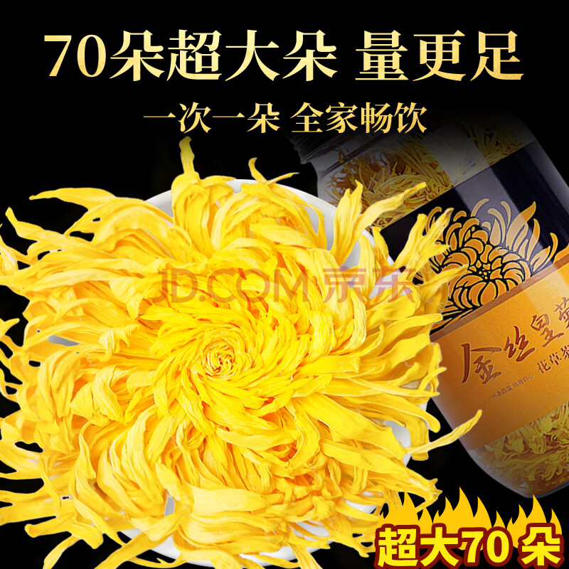 商品相册:贡苑【超大朵9cm】菊花茶金丝皇菊胎菊黄山特一朵一壶级金银花茶叶28g第