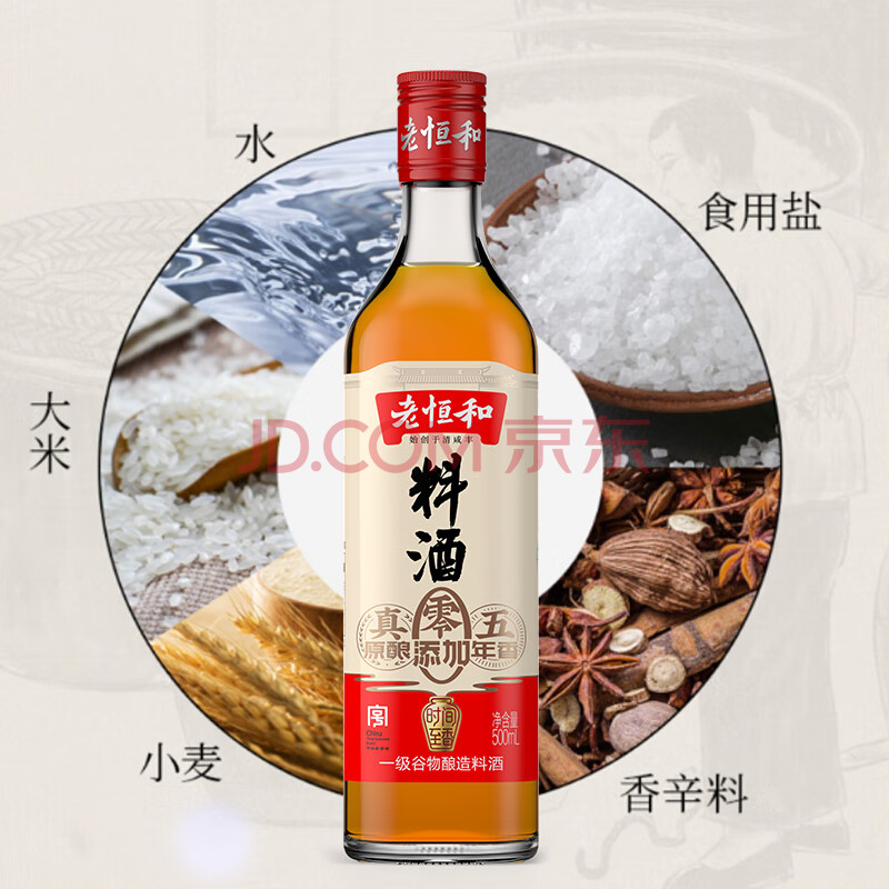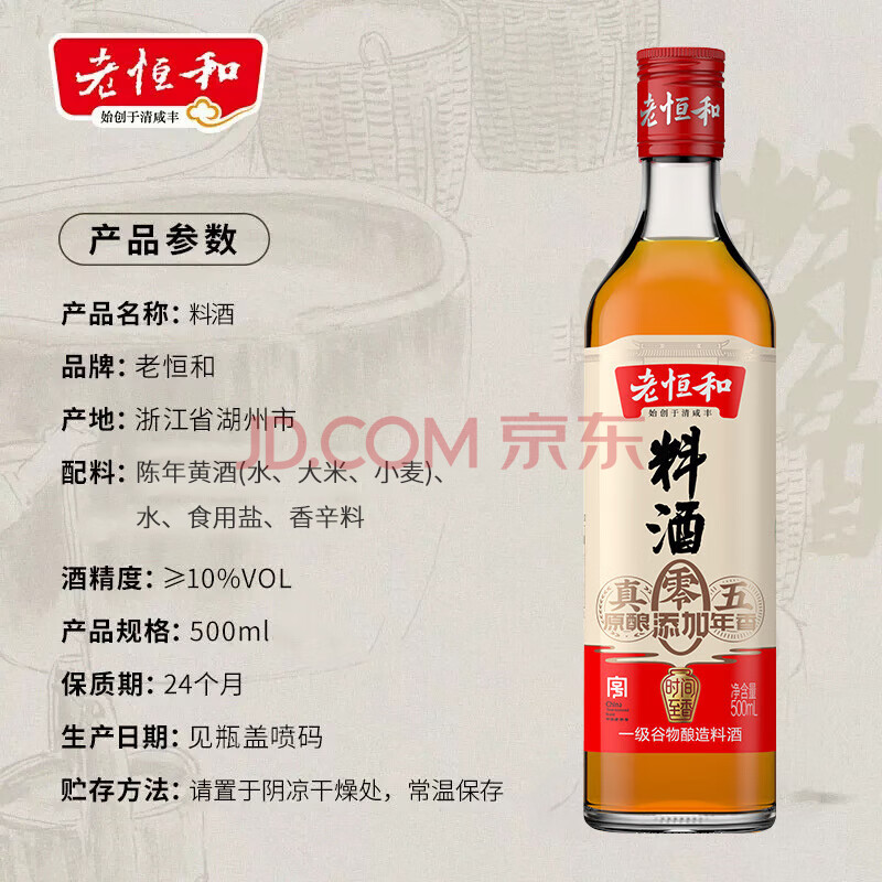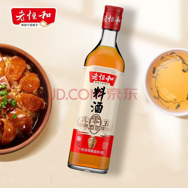 商品相册:老恒和五年陈酿料酒500ml【0添加】陈年粮食酿造去腥提香增鲜家用调味料第