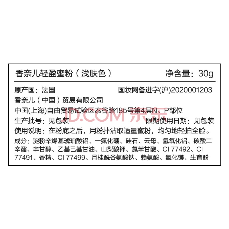 商品相册:香奈儿(Chanel)轻盈蜜粉(浅肤色20#)30g 定妆散粉 清透不卡粉生日礼物送女友老婆第