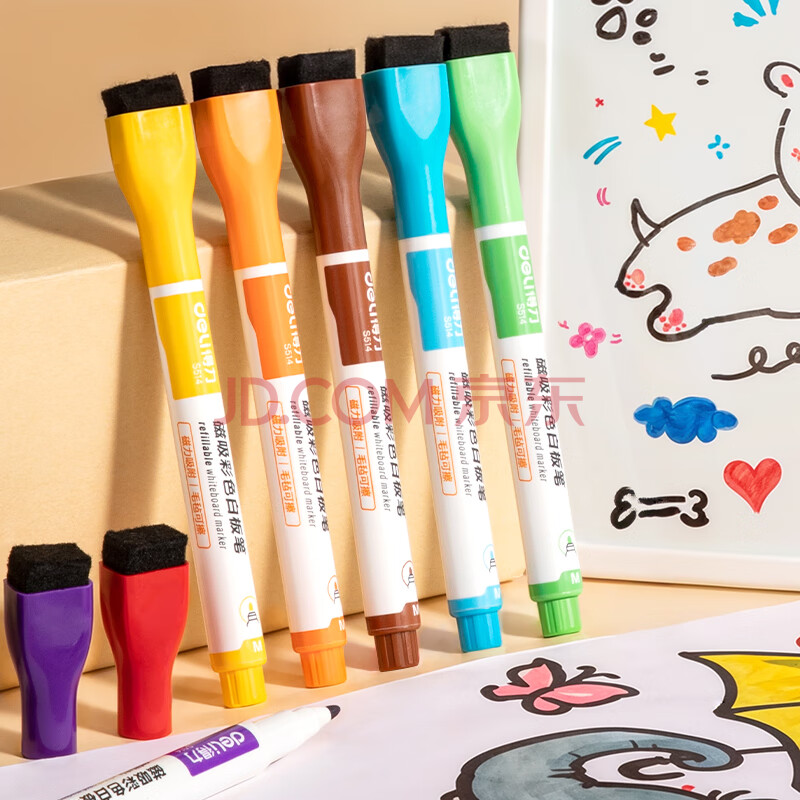 商品相册:得力(deli) 磁吸儿童彩色可擦白板笔益智学生文具套装 马克笔水彩笔涂鸦绘画 8支/盒 S514 儿童节礼物第
