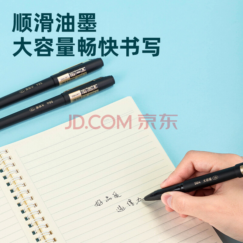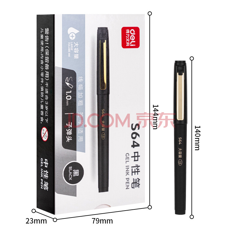 商品相册:得力(deli)商务风大容量拔帽中性笔签字笔 办公办公笔 1.0mm子弹头 12支/盒黑色 S64第