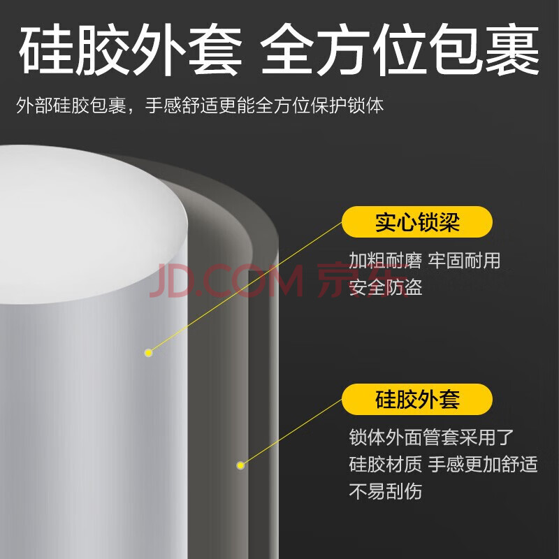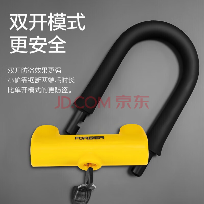 商品相册:永久自行车锁U型电动车锁骑行装备配件硅胶防盗钥匙锁S514黑黄色第