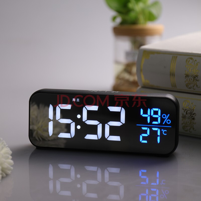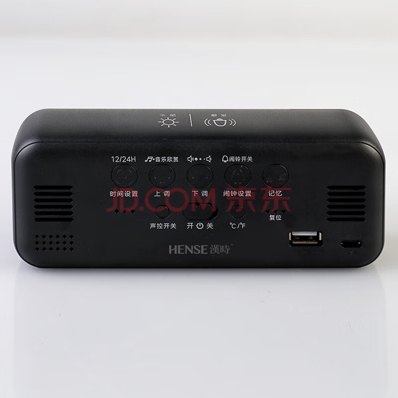 商品相册:汉时(Hense)时尚电子闹钟智能声控充电时钟学生懒人闹表多功能台钟HA820黑色开学季第