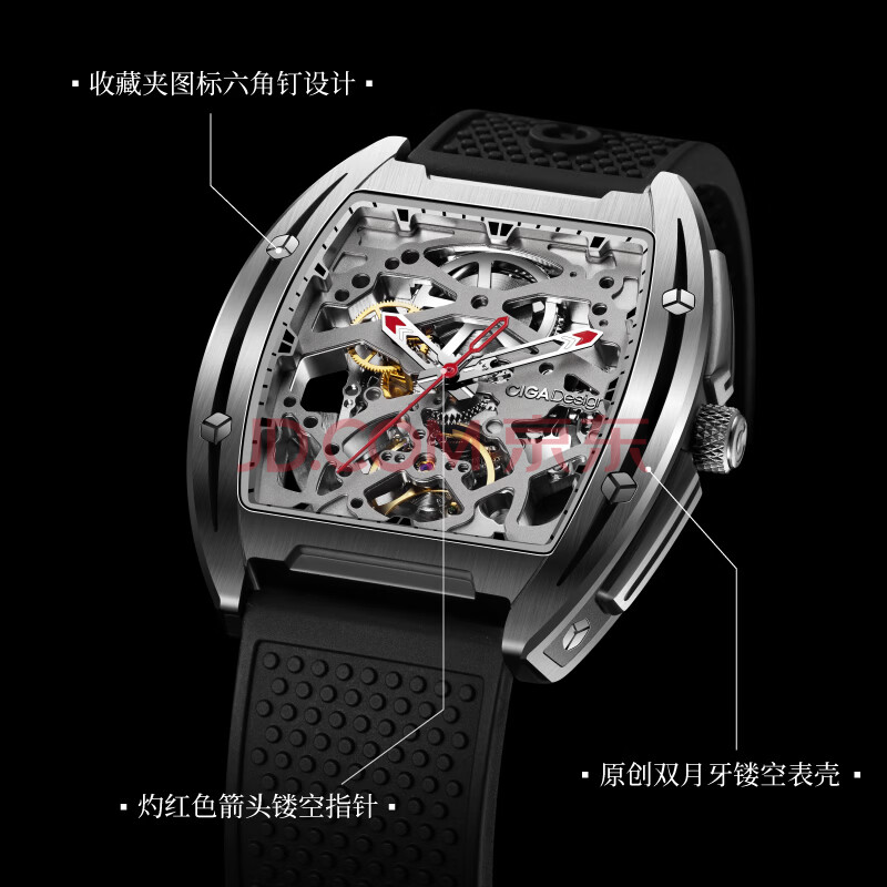 商品相册:CIGA Design玺佳锋芒系列机械腕表潮流全镂空酒桶表 手表男款 生日礼物第
