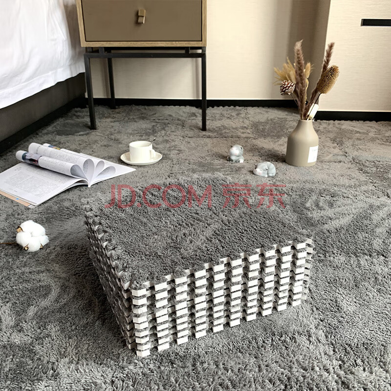 商品相册:富居毛绒方块拼接地毯客厅满铺隔音隔凉防滑30cm10片深灰(约0.9平米)第