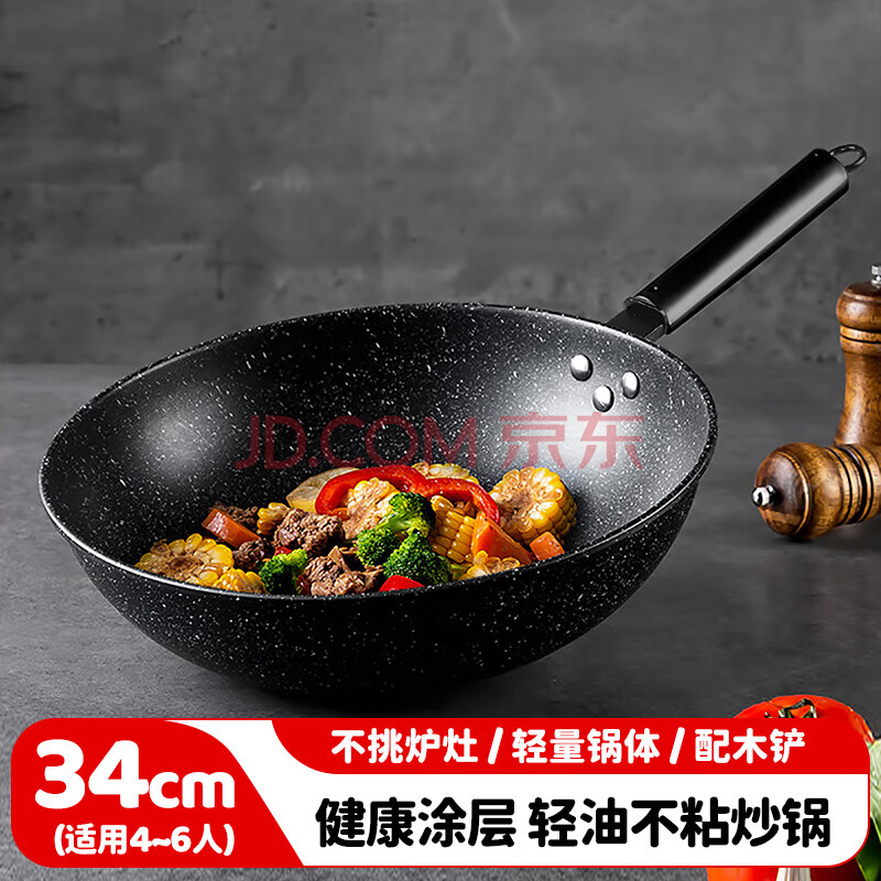 商品相册:美厨(maxcook)不粘炒锅 精铁34cm 配木铲 燃气炉电磁炉通用 不粘涂层MCC9328第