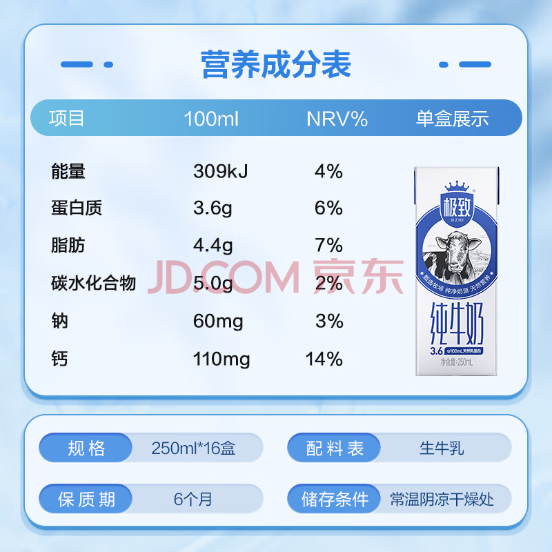 商品相册:三元极致全脂纯牛奶整箱250ml*16盒3.6g乳蛋白 整箱礼盒第