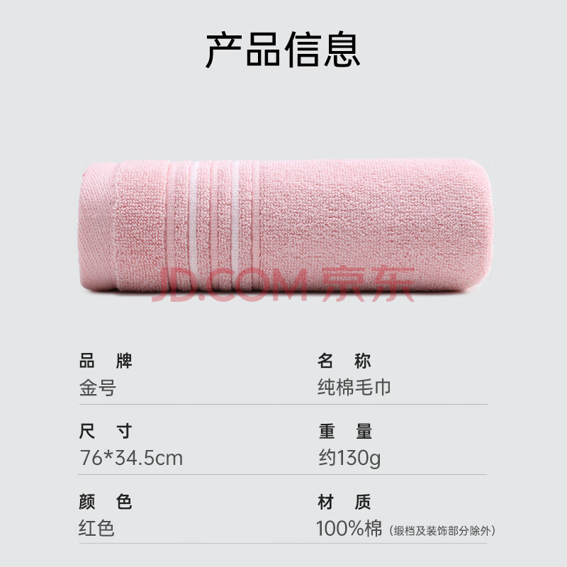 商品相册:金号纯棉毛巾 130g全棉洗脸巾吸水面巾加厚成人擦脸巾 红色第