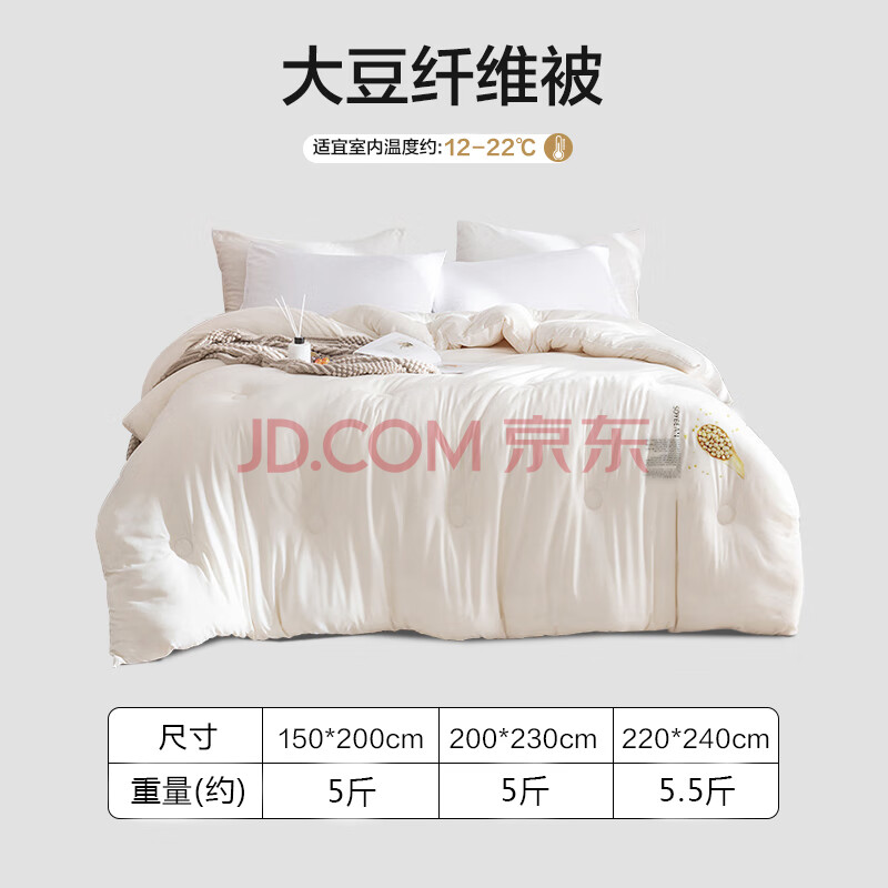 商品相册:源生活 被子被芯 大豆纤维被春秋被褥 四季被约5.5斤220x240cm米白第