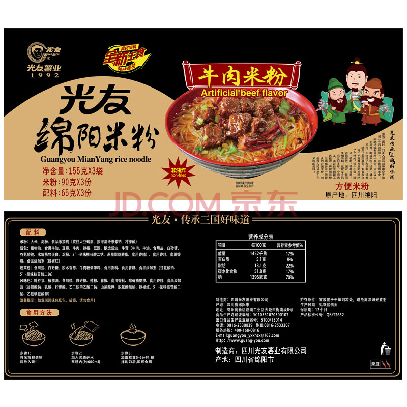 商品相册:光友绵阳米粉牛肉米线礼盒装低Gi食品特产155g*3袋减脂减肥即食早餐第1张/共7