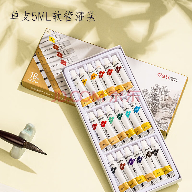 商品相册:得力(deli)国画颜料18色5ml中国画水墨画山水画文房四宝专业美术绘画彩绘国画套装73865-18第