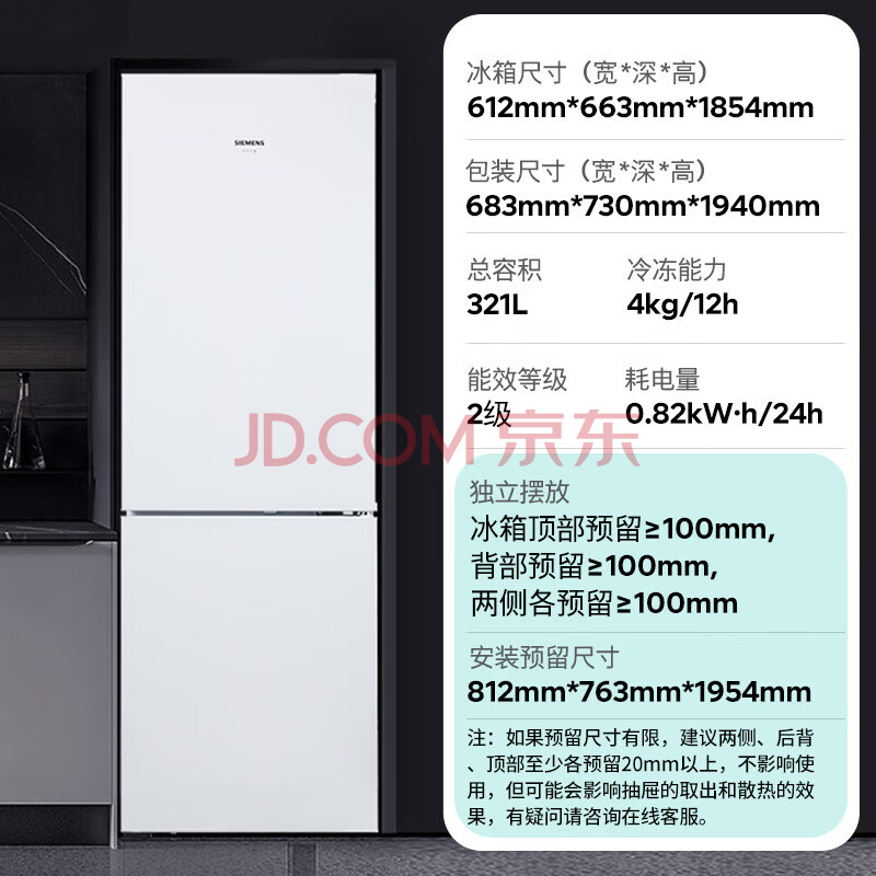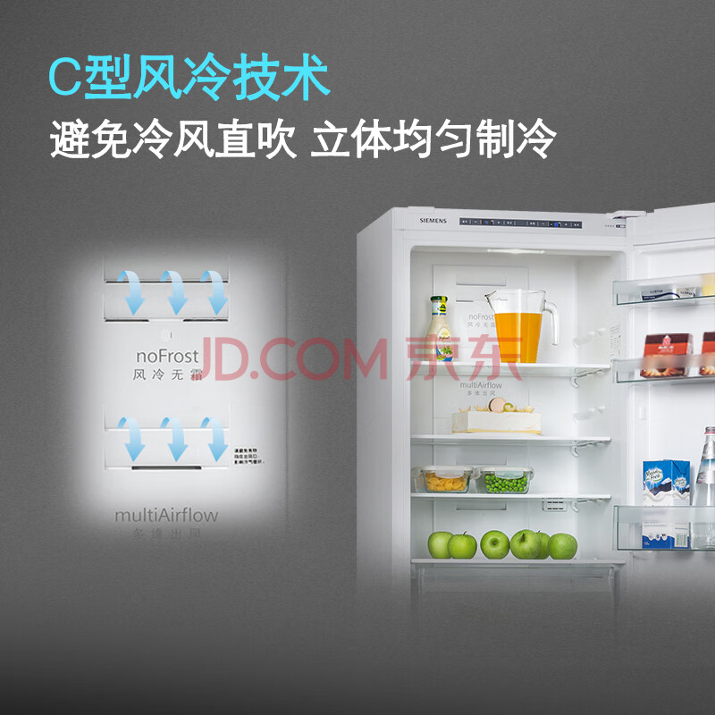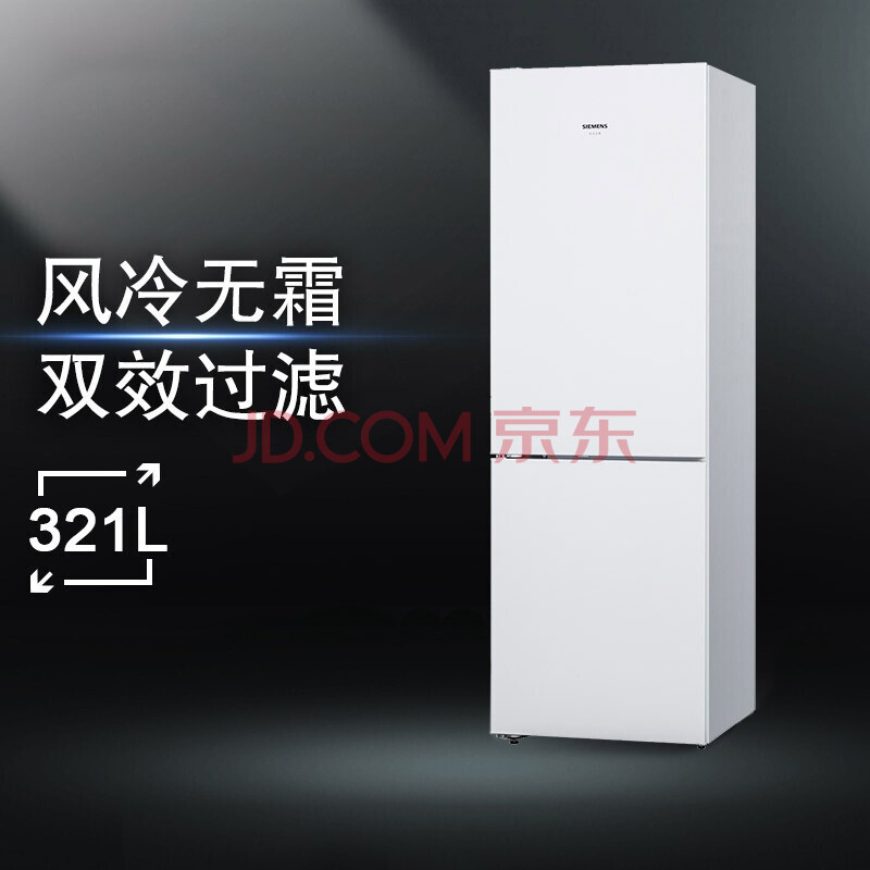 商品相册:西门子(SIEMENS)321L两门冰箱小冰箱风冷无霜 锁水保鲜 双效过滤 冷鲜空间 白 KG32NV21EC第