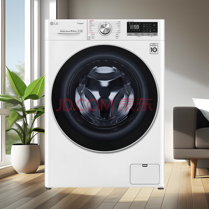 商品相册:LG 10.5KG大容量滚筒洗衣机全自动家用 蒸汽抚皱 AI直驱智慧洗 蒸汽除菌螨 FLW10G4W第