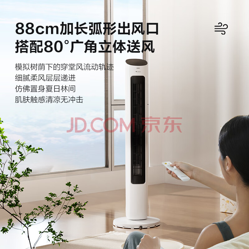 商品相册:格力(GREE)【风柔音轻】智能定时预约开关机塔扇电风扇远柔风无叶风扇摇头落地扇母婴扇遥控塔扇 FL-08X61Bg第