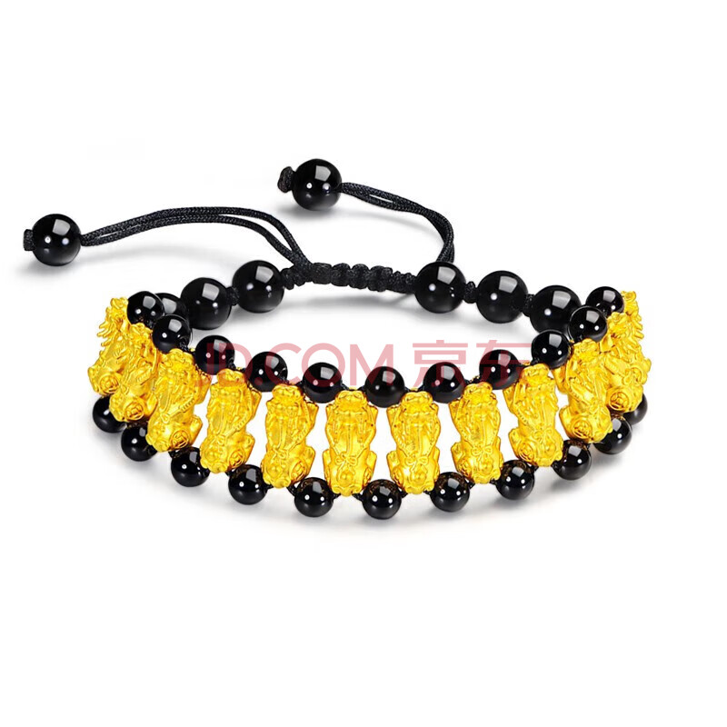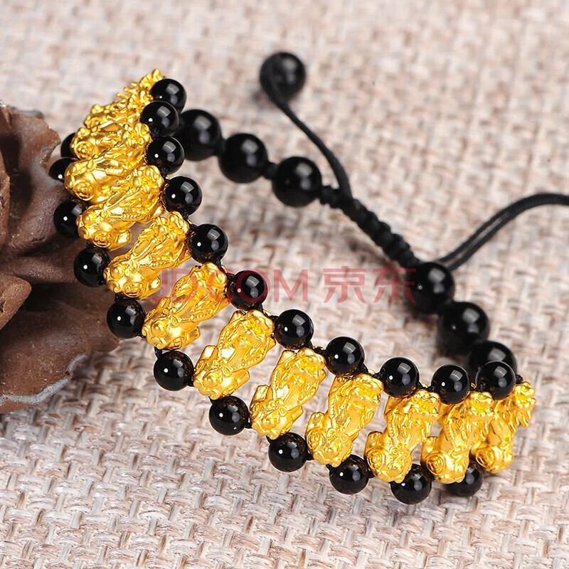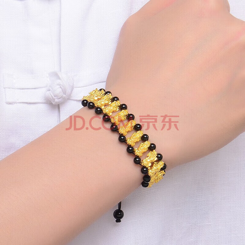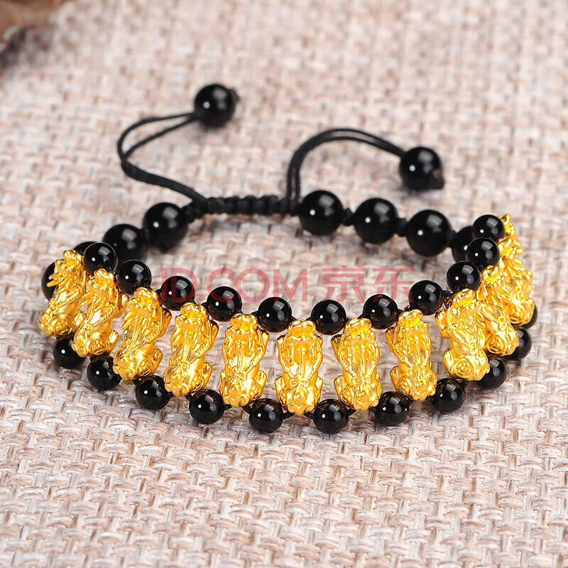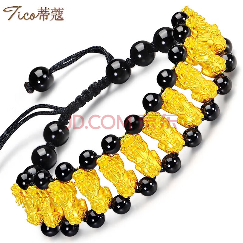 商品相册:蒂蔻(Tico)瑞兽足金招财貔貅黄金手链男款3D硬金黑玛瑙手串送男友生日礼物第1张/共6