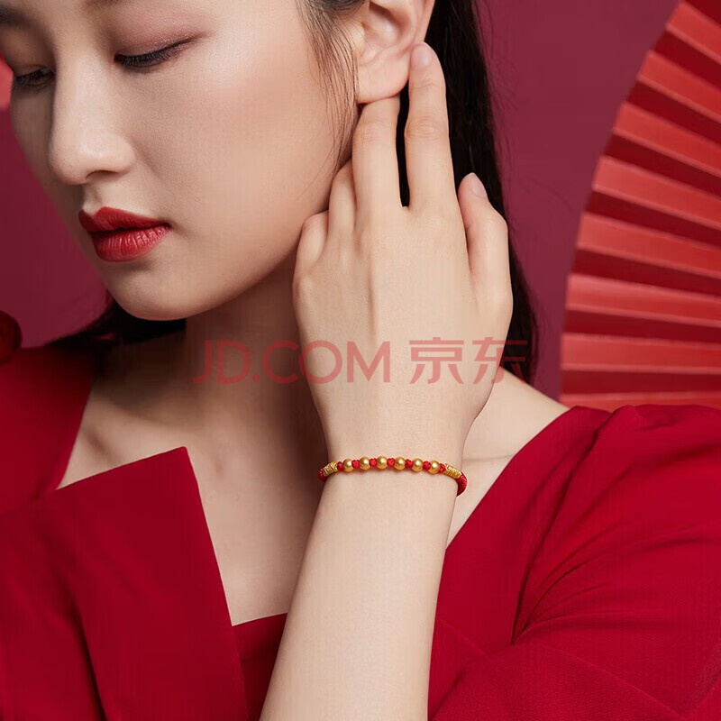 商品相册:蒂蔻(Tico)足金古法金珠黄金转运珠手链路路通本命年红绳手串生日礼物第