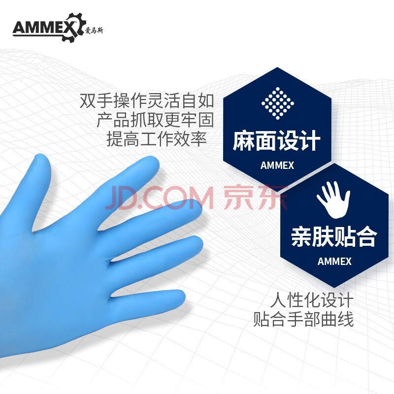 商品相册:爱马斯(AMMEX) 一次性手套丁腈手套中码100只防护橡胶厨房家务清洁洗碗餐饮手套第