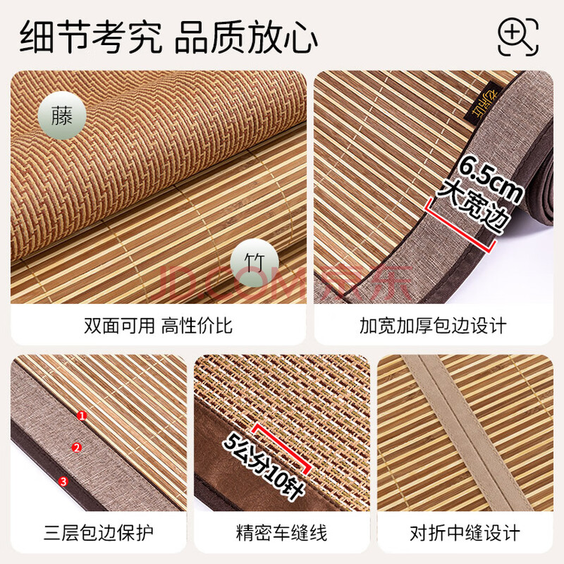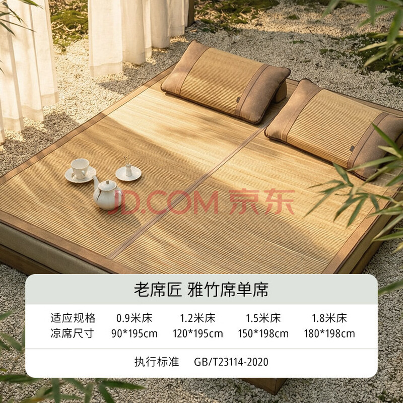 商品相册:老席匠雅竹碳化头层竹青竹席凉席双人单席180*200【可折叠 双面可用】第