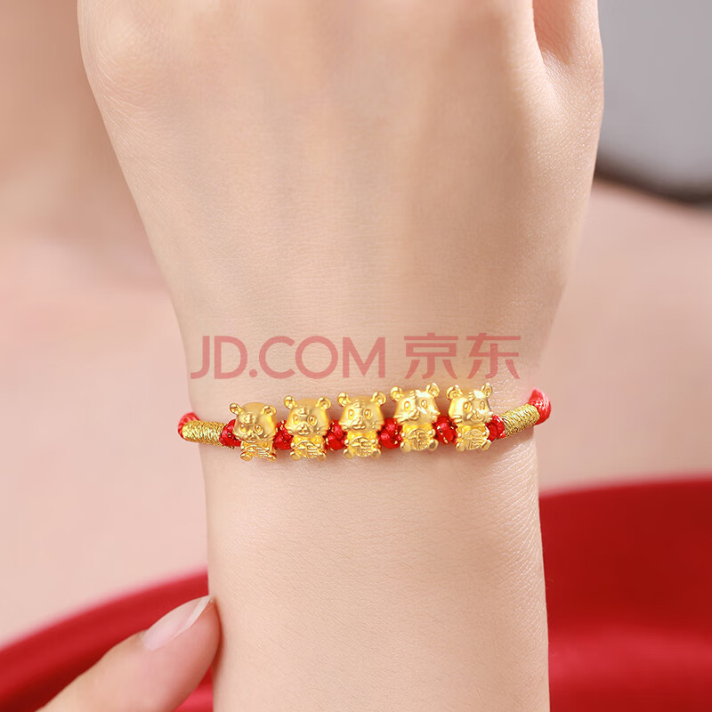 商品相册:Lossot生日礼物本命年生肖虎足金999五福虎黄金转运珠手链编织红绳第
