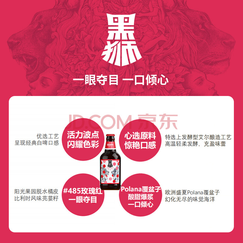 商品相册:黑狮啤酒【雪花旗下高端品牌】玫瑰红覆盆子果啤330ml*12瓶王一博同款第