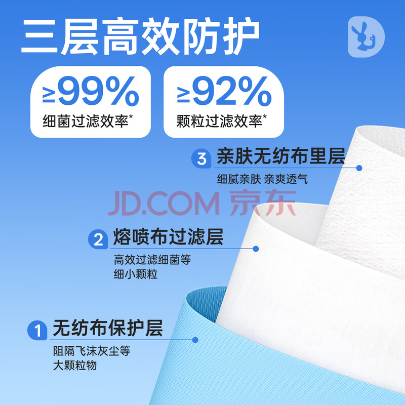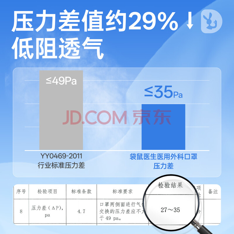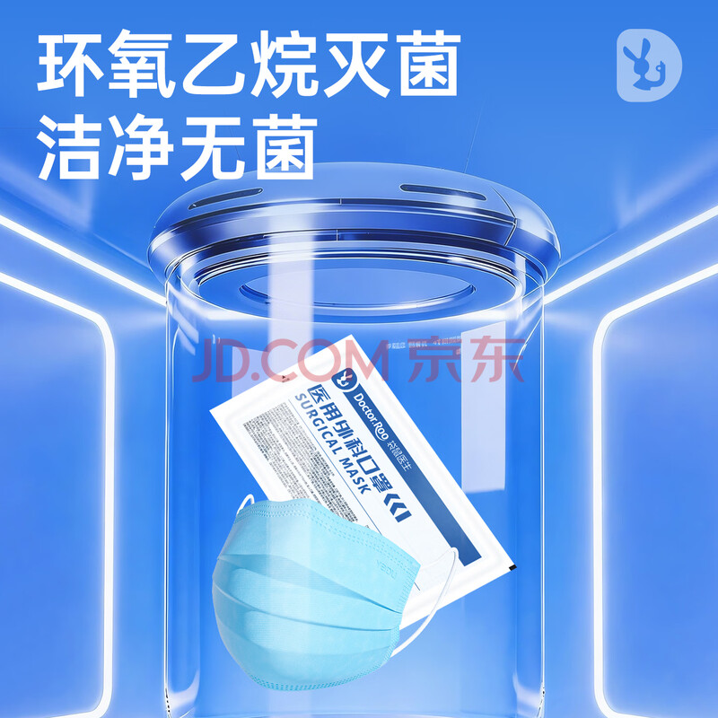 商品相册:袋鼠医生医用外科口罩成人50只独立包装一只一袋一次性灭菌级防尘防晒透气第1张/共9