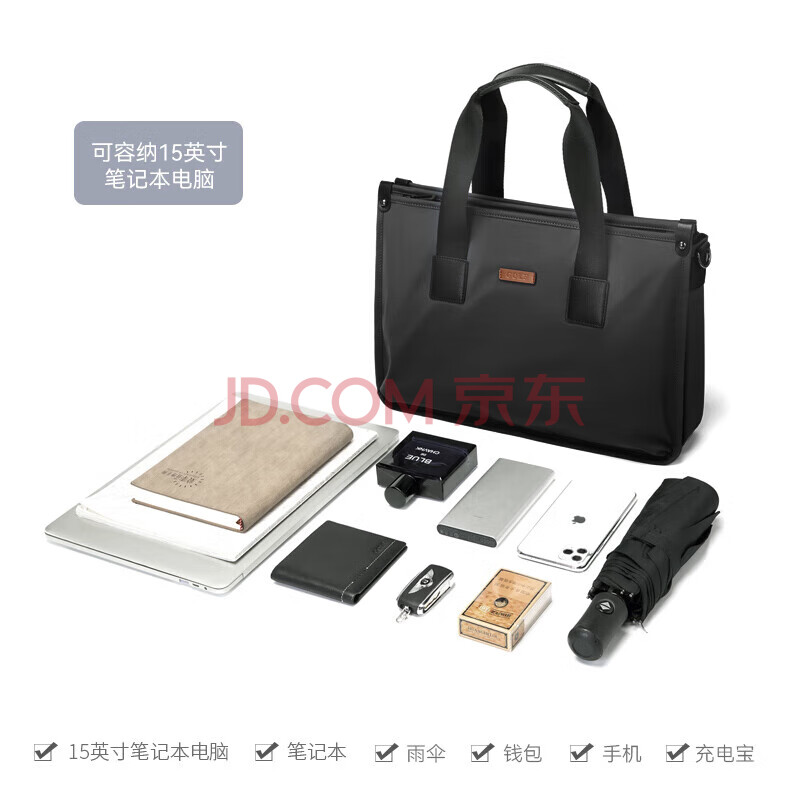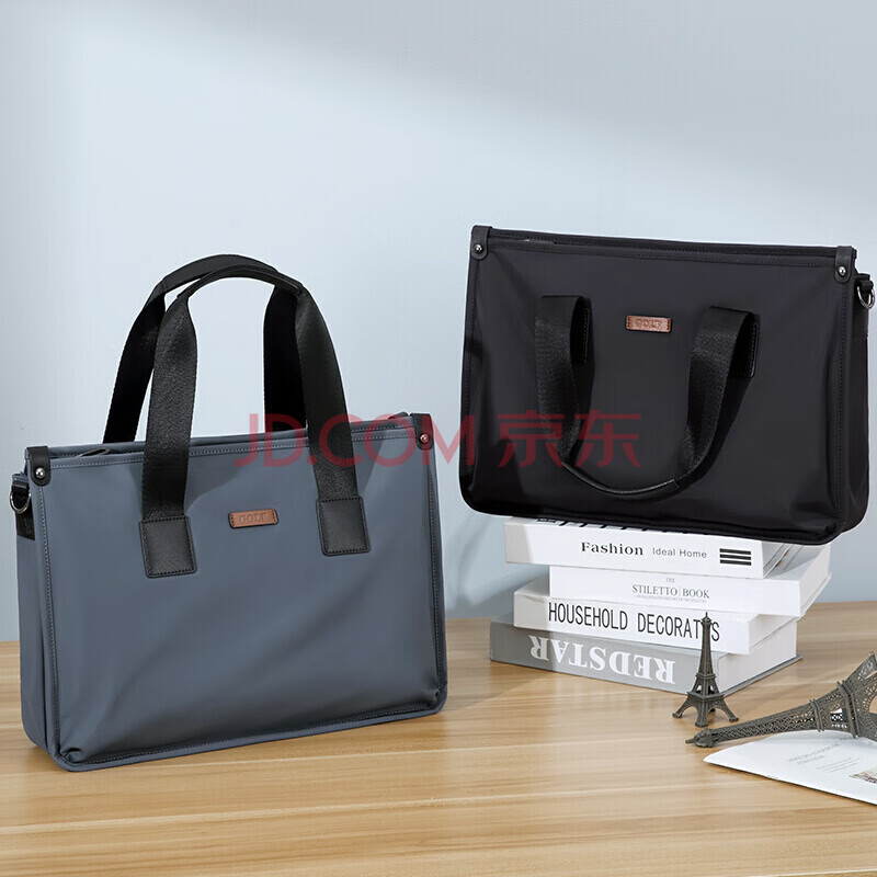商品相册:高尔夫GOLF商务公文包男士大容量手提包男可装15英寸电脑包多隔层休闲横款单肩斜挎男包 黑色 送男友父亲礼物第