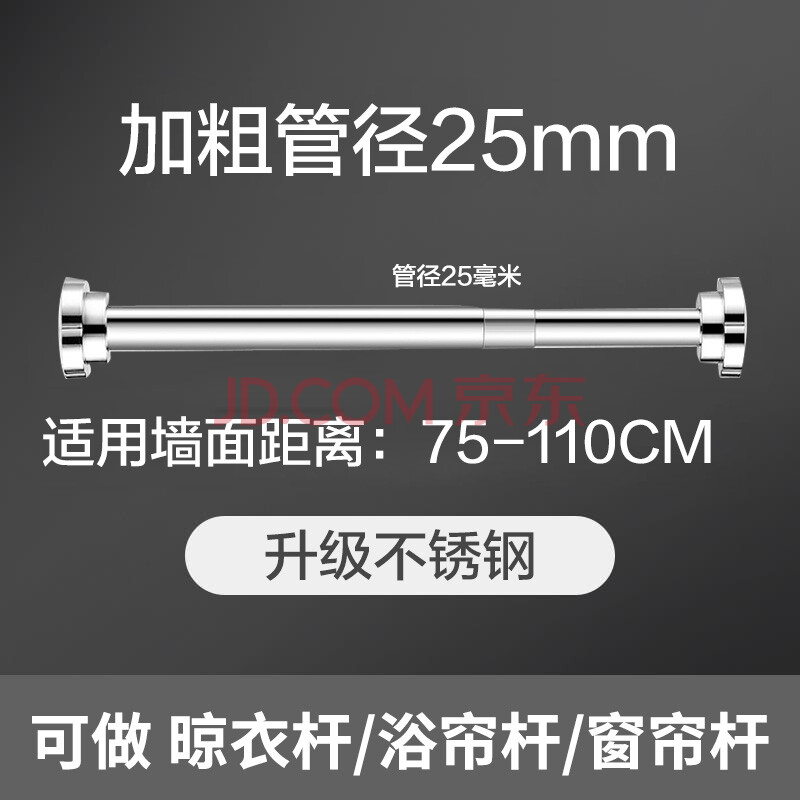 商品相册:侑家良品 伸缩杆免打孔伸缩晾衣杆加长浴帘杆窗帘杆加粗不锈钢75-110cm第1张/共3
