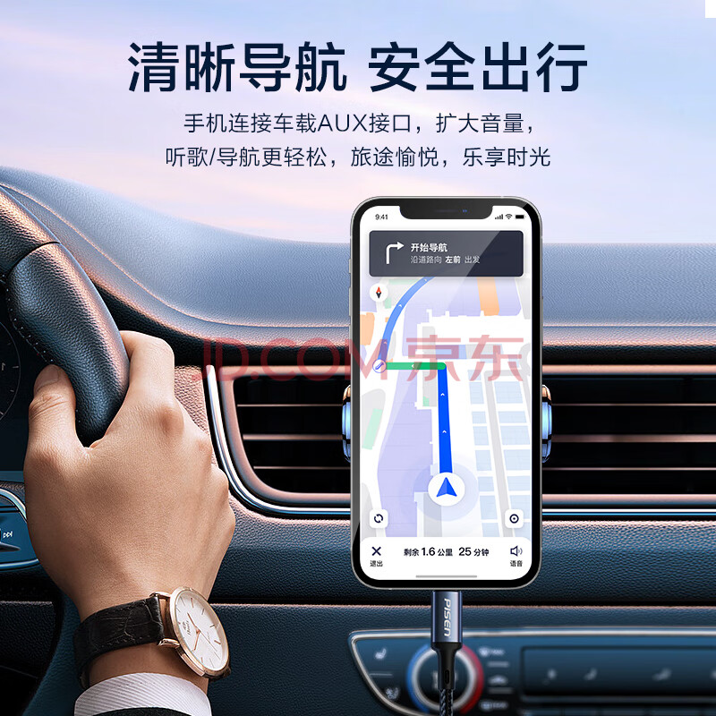 商品相册:品胜苹果车载aux音频线lightning转3.5mm转接数据线通用苹果iPhone14/13手机平板接耳机车用音响音箱第