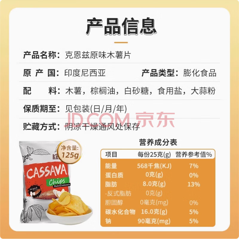 商品相册:克恩兹印度尼西亚进口 Kernes 克恩兹 原味木薯片125g第1张/共4