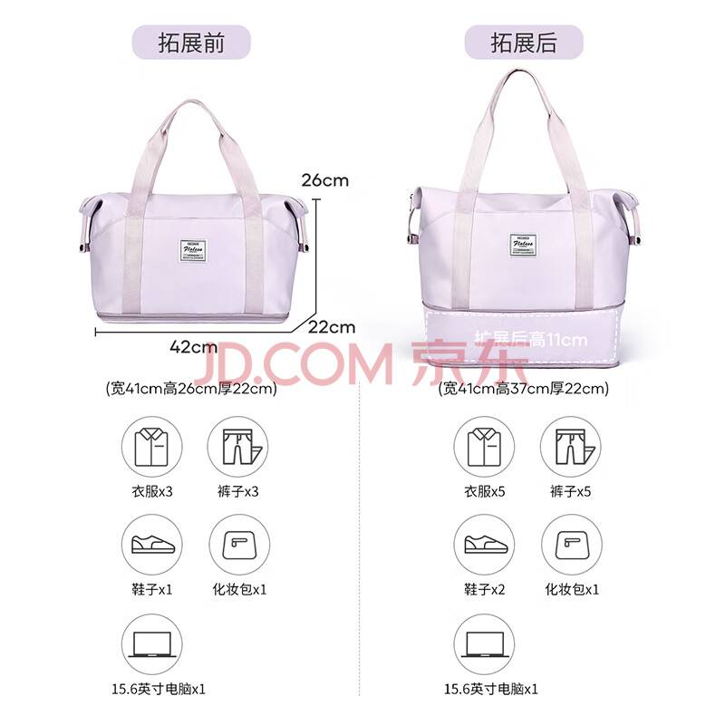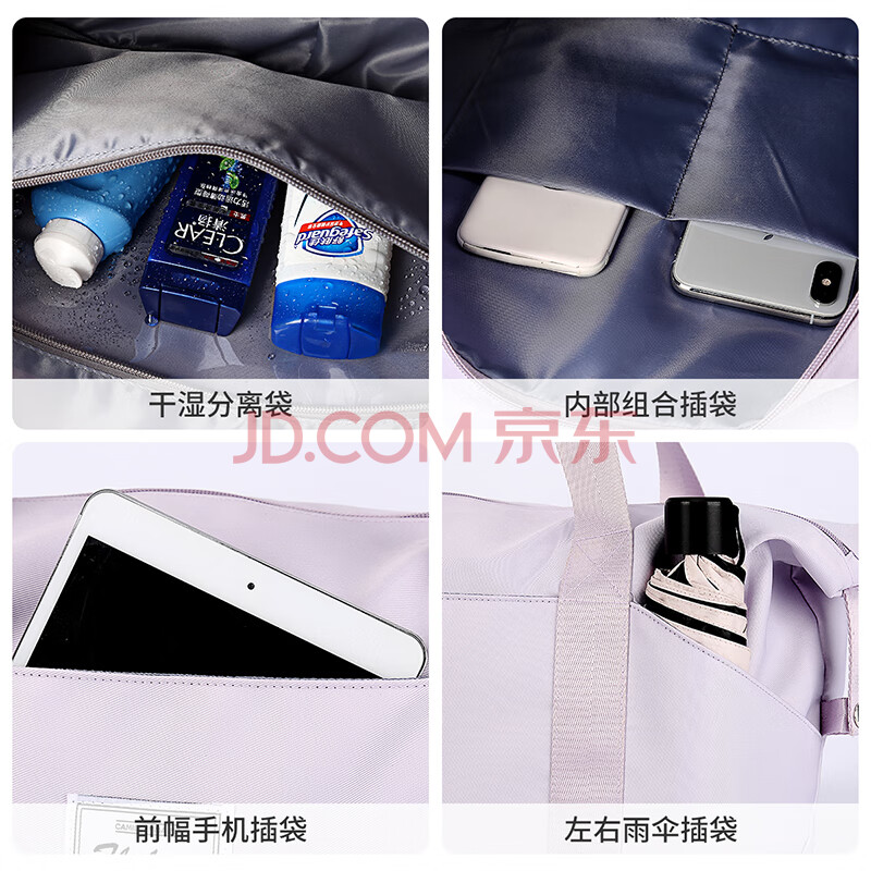 商品相册:Landcase手提旅行包女大容量行李包可扩容收纳包干湿分离健身包2104紫色第