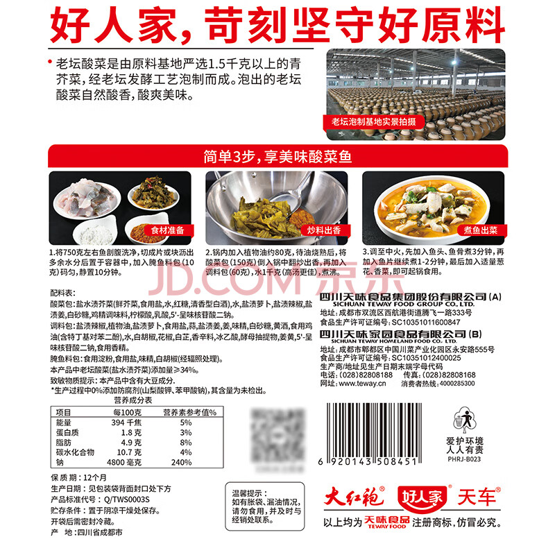 商品相册:好人家老坛酸菜鱼调料220g 【0添加防腐剂】酸菜鱼包一料多用可做1斤鱼第