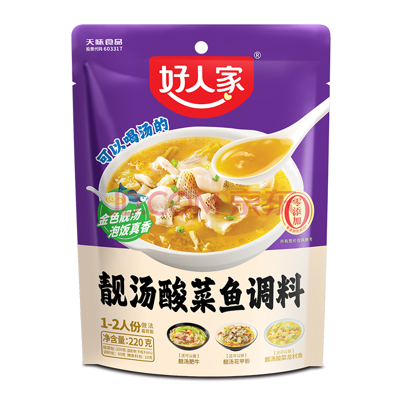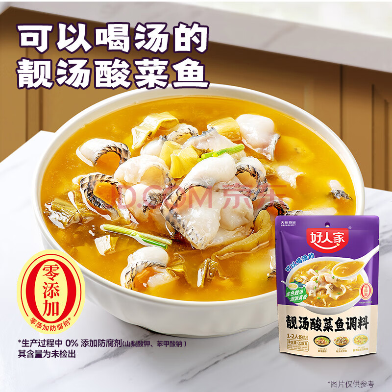 商品相册:好人家靓汤酸菜鱼调料220g 【0添加防腐剂】酸爽金汤可喝汤可做1斤鱼第